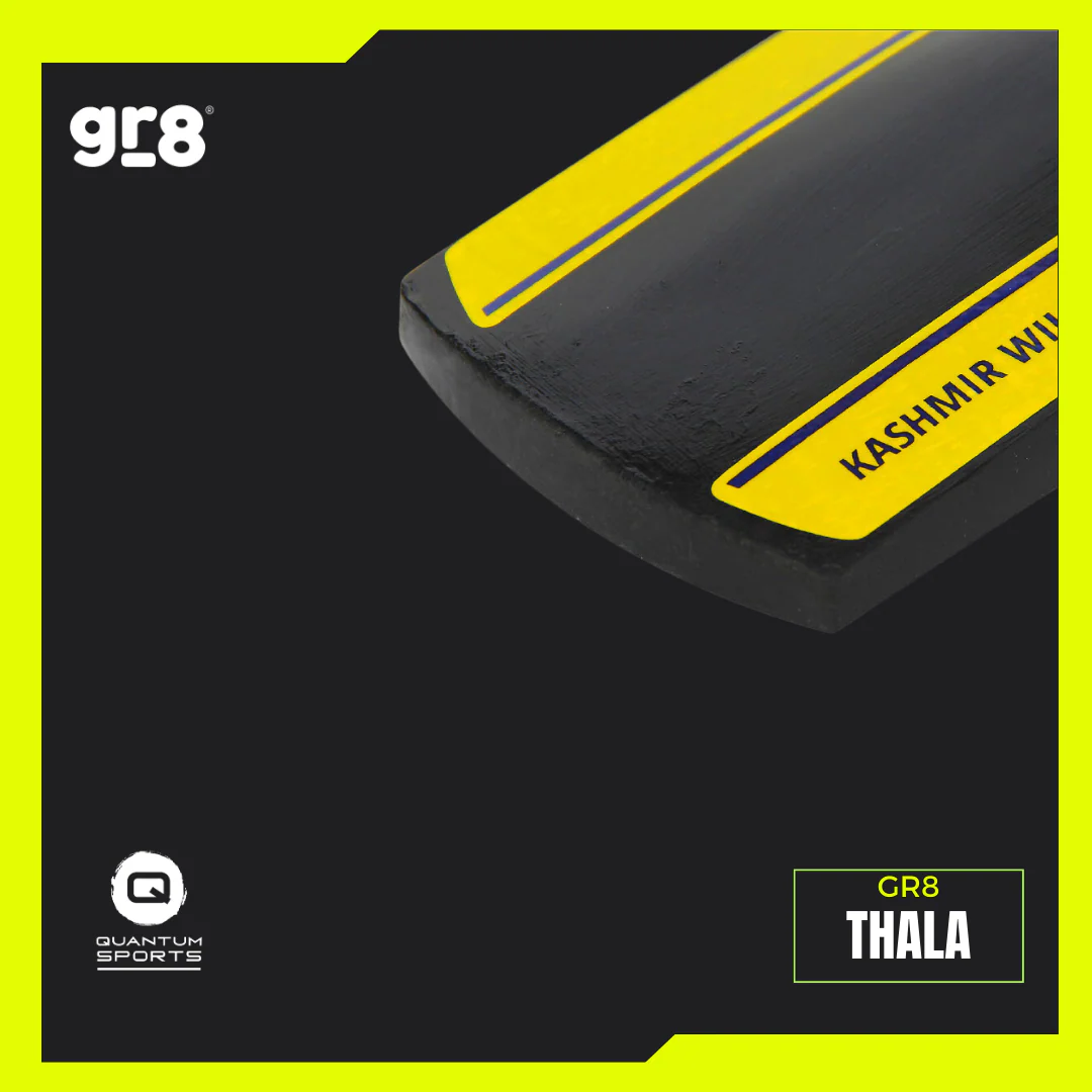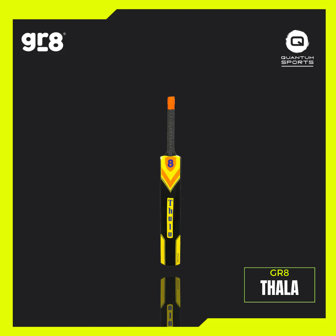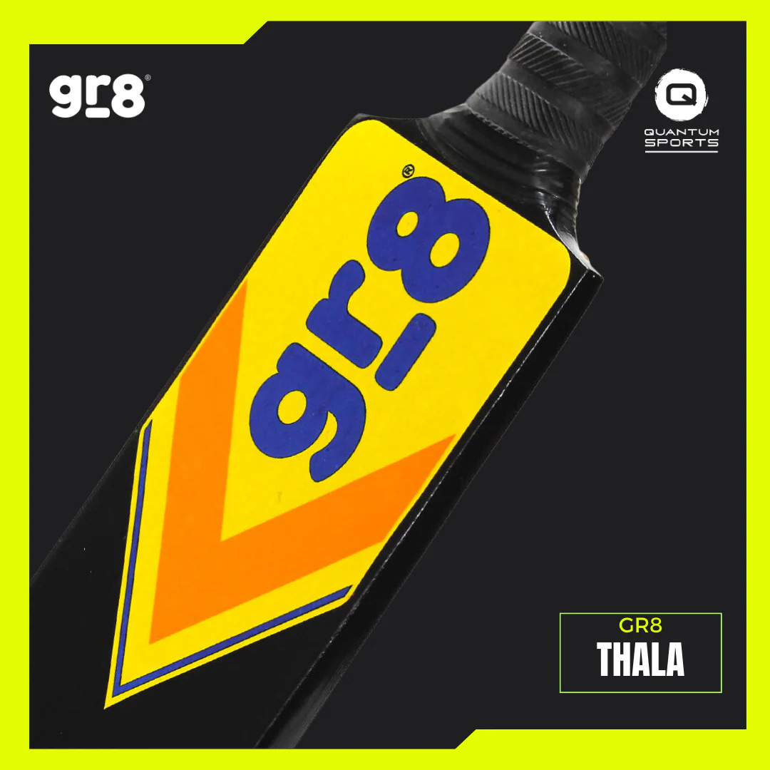 Inspired by fearless leadership and calm precision, the GR8 Thala Cricket Bat embodies consistency and power. Featuring a mid-to-high sweet spot, it allows aggressive stroke play with effortless timing. The thick edges and enhanced spine profile offer maximum power transfer for long boundaries, while the balanced pickup ensures control for quick singles and defensive play. Perfect for match-winning performances, this professional-grade cricket bat delivers reliability and impact on every shot. Built for players who lead by example, the Thala represents true confidence and class.